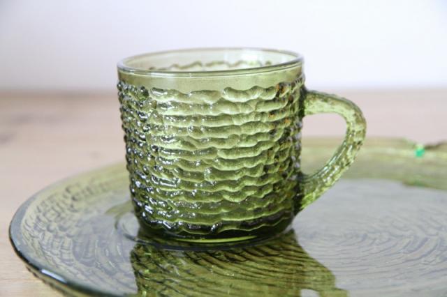 アメリカのヴィンテージガラスを代表するブランド、アンカーホッキング(Anchor Hocking)社の人気シリーズ「ソレノ(Soreno)」のスナックセットです。
