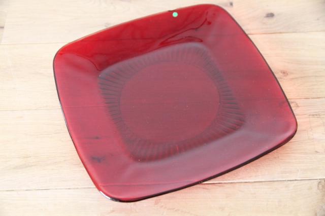 アメリカのガラスメーカー、アンカーホッキング社(Anchor Hocking)を代表する人気シリーズ「ロイヤルルビー」のスクエアプレートです。
