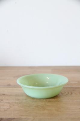 ヴィンテージ・アメリカンキッチンの象徴「ジェダイ」 1940〜60年代にかけて、アンカーホッキング社で製造されたファイヤーキングを代表するカラー「ジェダイ(翡翠色)」。ミルクガラス特有の柔らかな透け感と、独特の温かみのある緑色が、食卓を優しく彩ります。