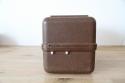 味わい深いブラウンカラーのプラスチック製ボディと、蓋のロック部分にあしらわれた躍動感のある魚のイラストが、時代を超えた魅力を放っています。