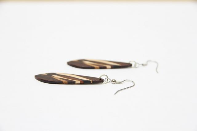 1979年創業アメリカのクラフトメーカー“davin&kesler”のピアス。木が本来持つ色や木目を生かした組木デザインは非常に細やかで、しなやかな曲線も大変美しいです。木目の落ち着いた雰囲気は、どんなテイストのファッションにも合わせやすそうです。