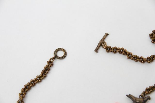 唯一無二の特別感を味わえる、Gem Kingdomのネックレス。様々なタイプのチェーンや、鳩のモチーフ、天然石などが絶妙なバランスで並んだデザイン。胸下までのロングネックレスなので、シャツなどの上から合わせるのもおすすめ。