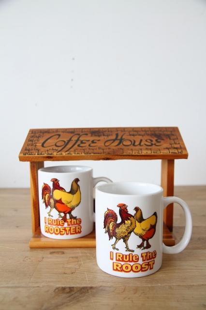 ニワトリ 親子 マグカップ 2個&木製コーヒーカップスタンド セット