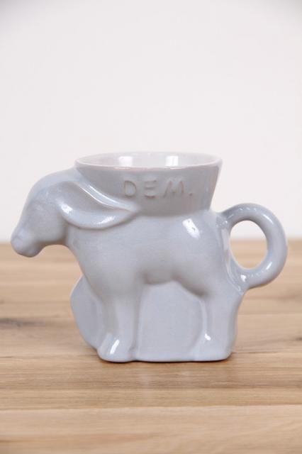 エレファントマグとドンキーマグは、アメリカの大統領選挙応援の為にFRANKOMA社が作ったマグです。ゾウは共和党、ロバは民主党のマスコット。ゾウのマグに刻まれたGOPとは、Group Of Pictures "共和党"の略で、ロバのマグのDEMは、Democrat "民主党"を指します。