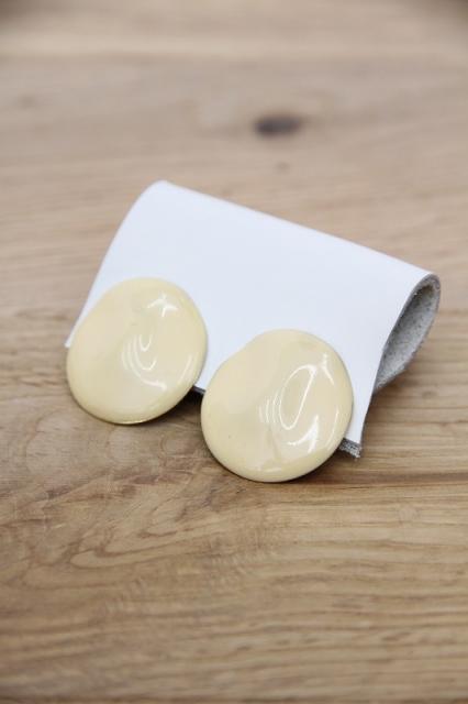 アメリカ製、うねりのある丸形のヴィンテージイヤリングです。クリーム色のようなカラーとレトロな雰囲気が特徴的!