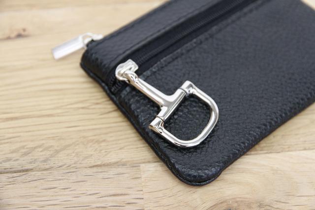 ホーススナッフルビットのパーツがアクセントに、品のある雰囲気を漂わせるIDEANAのレザーコインケース。中には鍵を付けられるリングが付いています。
