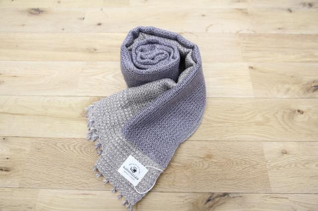 オーガニックコットン100%の杢糸をツートンデザインにしたもじり織りのマフラー。