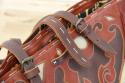 この製品は、天然の皮革を使用しております。皮革の表面は傷がつきやすいので丁寧にお取り扱いください。また、ご使用中の摩擦や水濡れにより色落ちや色移りの可能性があります。白色・淡色系の衣類等との組合せの際には、充分にご注意ください。