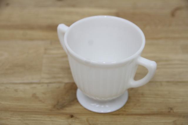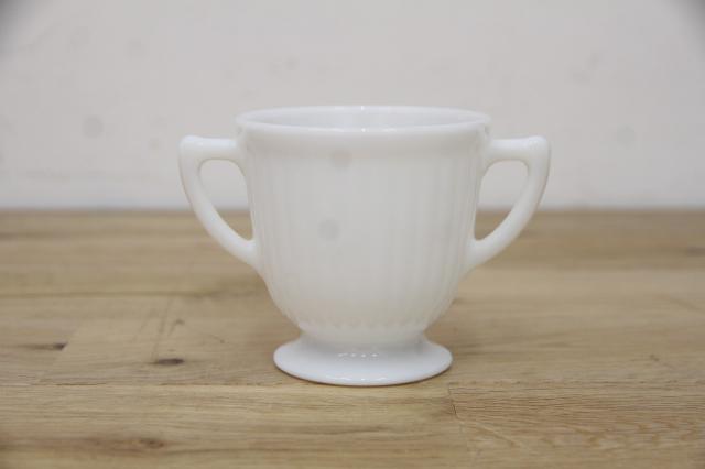 繊細なミルクガラスが特徴の、マクベス・エバンスのシュガーポットです。花びらをイメージした、ペタルウェアシリーズ。