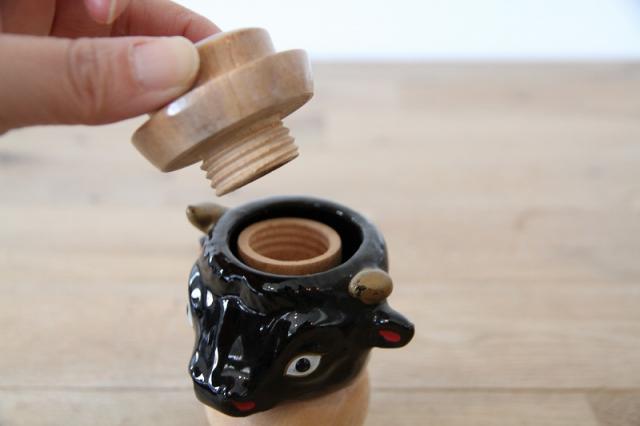 牛のヘッド 陶器×天然木 ソルト&ペッパー セット