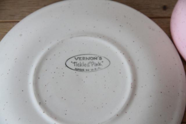 1950年代、アメリカのカリフォルニアに存在した名窯 Vernon Kilns(バーノン・キルンズ)。 ミッドセンチュリー期ならではの遊び心溢れるデザインで今なお愛される同ブランドより、希少な「Tickled Pink(ティックルド・ピンク)」シリーズのカップ&ソーサーになります。