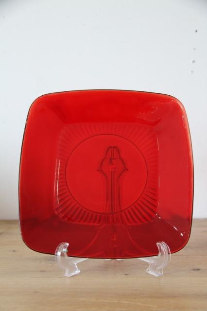 アメリカのガラスメーカー、アンカーホッキング社(Anchor Hocking)を代表する人気シリーズ「ロイヤルルビー」のスクエアプレートです。