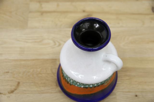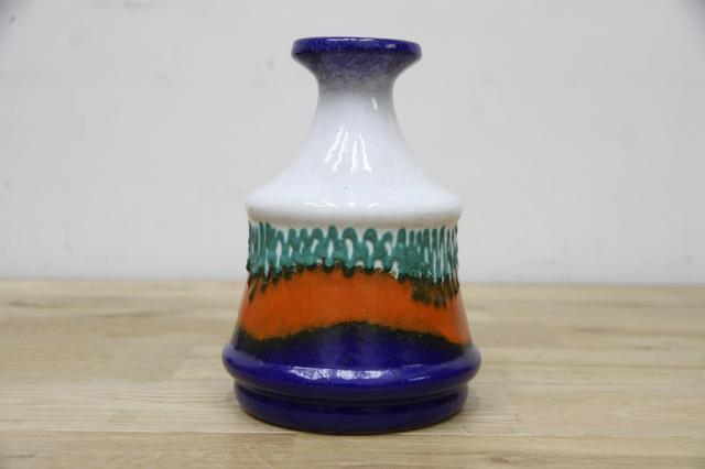 東ドイツStrehla社製のフラワーベースです。共産圏だった東ドイツは、西ドイツよりも生活にかかわるすべてのことが保守的で、このフラワーベースもおそらく輸出用に生産されたものだと言われています。カラーコントラストが大変美しい一点です。