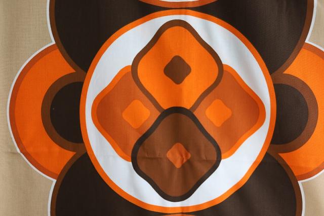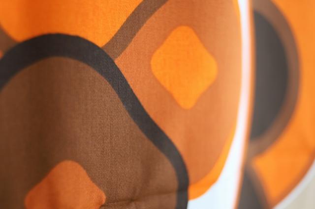 ミッドセンチュリーな雰囲気漂う、ヴィンテージのファブリックです。季節問わずお使いいただける質感の生地で、あまり透け感がなく程よく厚みがあるインテリアファブリック。壁に掛けたり、カーテンとしてアレンジをするのにもおすすめです。