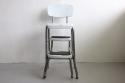 アメリカ買付のメタルステップスツールです。座面下のステップを手前日引き出すと小さな脚立に早変わり。スツールと脚立が一体化した実用的なアイテムです。例えばキッチンに置いて高いところに手を伸ばしたいときのステップ利用はとても便利ですし、他、カウンターやガレージ、お花を置く台としてなど、様々な用途で使える家具です。