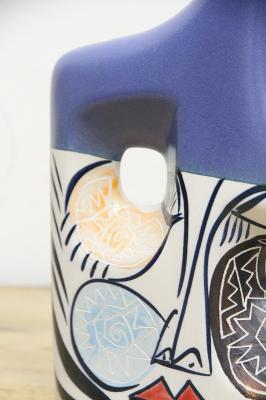 当初から、地域の素材、石器、磁器、耐火物、ブラシで手描きし、独自のデザインとモチーフを使用して、高温で作業することを選択。形は、ロマネスク様式のすべての地中海文化だけでなく、アフリカとオーストラリアのアボリジニの民族芸術からも引き出されており、そこにデザイン、ボリュームの簡素化、モチーフが追加され、独自の創造的な統合が生み出されています。