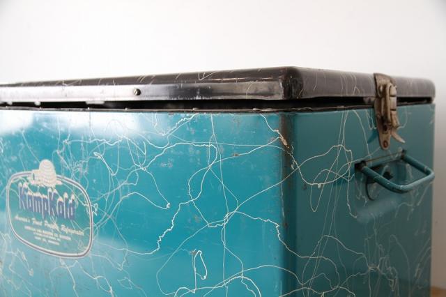 このクーラーボックスは、アメリカン・ガス・マシン社(American Gas Machine Co.)のディビジョンであるKampKold社製の、おそらく1950年代頃の非常に希少なヴィンテージアイテムです。