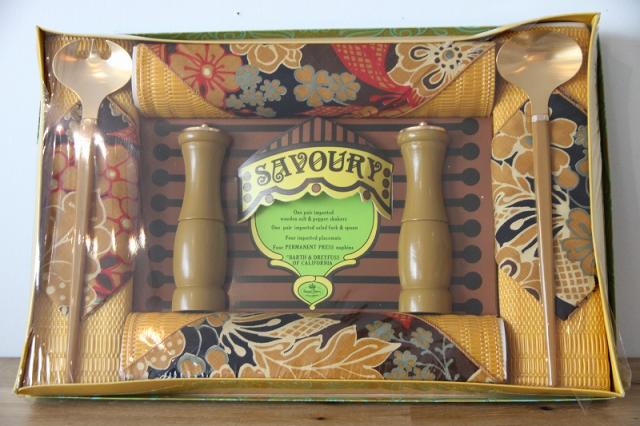 1970年代頃のものと思われる、Barth & Dreyfuss of California社の「SAVOURY」シリーズ。 当時のアメリカらしい、マスタードイエローやブラウンを基調としたボタニカル柄が非常にスタイリッシュです。