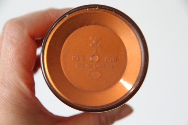 深みのあるメタリックオレンジ(コッパー系カラー)と、清潔感のあるホワイトのコントラストが目を引くミッドセンチュリー期らしいデザイン。 底面には「MADE IN U.S.A.」の刻印があり、当時のプラスチック成型技術の高さと、古き良きアメリカのライフスタイルを感じさせます。