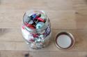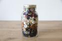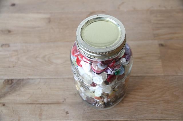 長い年月をかけて集められた、色とりどりのボタンがぎっしりと詰まったガラス瓶です。