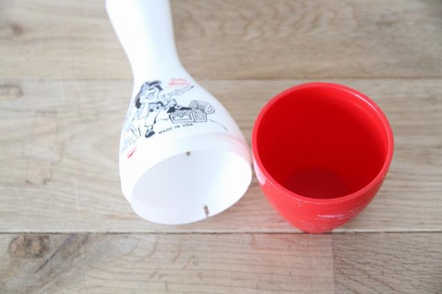 用途: コインや小銭を入れる貯金箱として使われます。画像には底の赤い部分が外れた状態も確認できるため、貯めたお金を取り出せるようになっています。