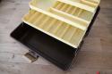 レトロなデザインと実用性: 1970年代〜1980年代頃のものと推測され、そのレトロなルックスはインテリアとしても抜群の存在感です。釣り具の収納はもちろん、趣味の道具やDIYツールの整理、小物入れとしてもおしゃれにお使いいただけます。