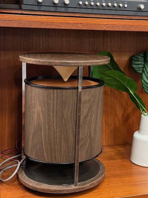 スピーカーユニットを上向きに配置し、円錐形ディフューザーで反射させることで、空間全体に音を広げる「360度無指向性システム」を採用。インテリアとしても存在感のある、ミッドセンチュリーデザインが魅力です。