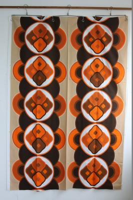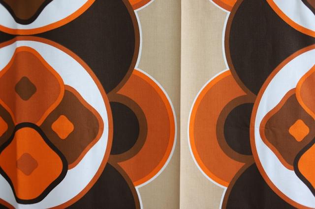 ミッドセンチュリーな雰囲気漂う、ヴィンテージのファブリックです。季節問わずお使いいただける質感の生地で、あまり透け感がなく程よく厚みがあるインテリアファブリック。壁に掛けたり、カーテンとしてアレンジをするのにもおすすめです。