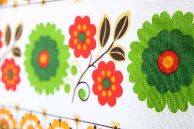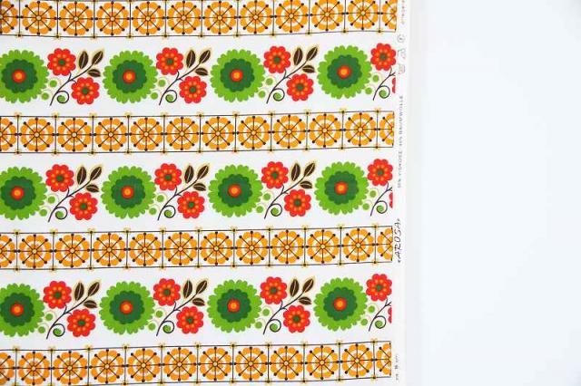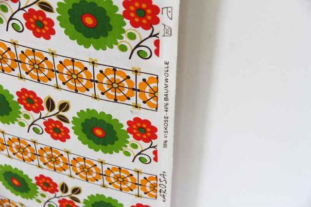 ドイツで見つけた大判のヴィンテージファブリックです。レトロなお花柄が整列したデザイン。4mほどありますので、カーテンやクッションカバーなど、お揃いの柄でのインテリア製作用の材料にもおススメです。