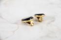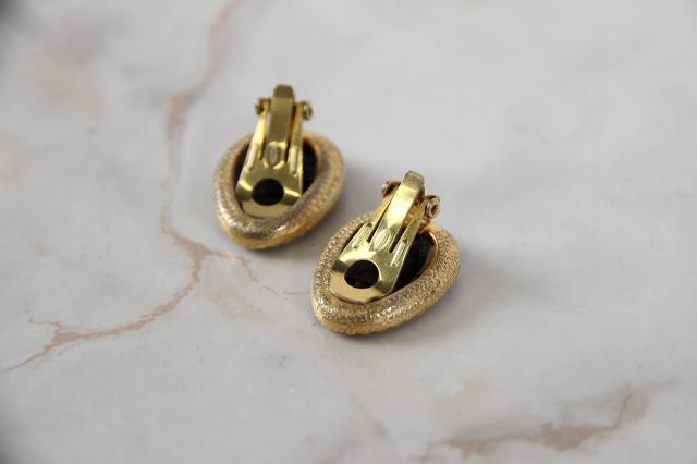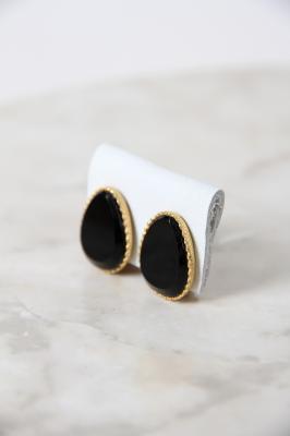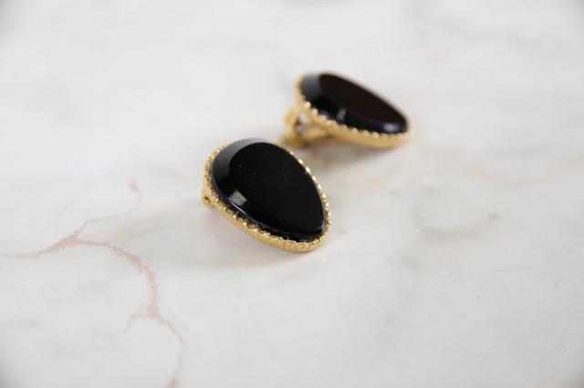 アメリカ製、ティアドロップ型のヴィンテージイヤリングです。ブラックとゴールドの組み合わせでとてもクラシカルなデザイン。フォーマルスタイルの時にもおすすめ。