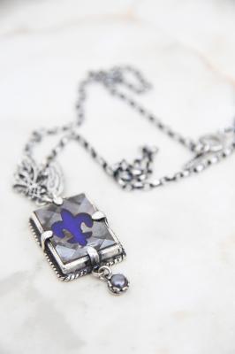 唯一無二の特別感を味わえる、Gem Kingdomのネックレス。百合の紋章がマザーオブパールの中に埋め込まれた手の込んだデザインです。男性にもおすすめのモチーフ。