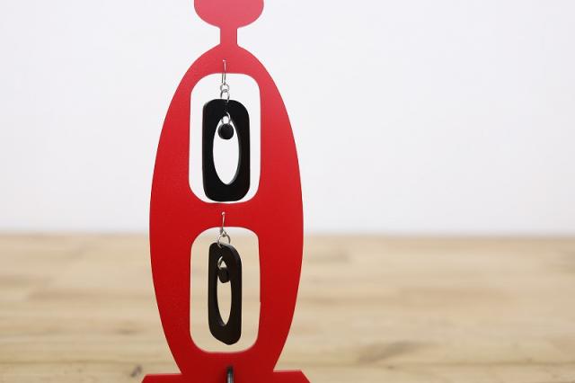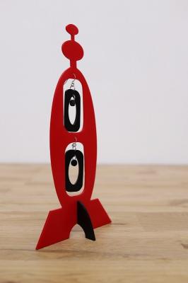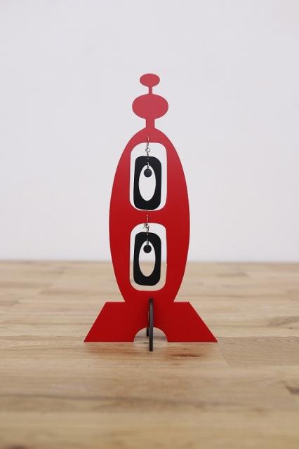 パッと目を引くカラー、曲線的なフォルムがモダンかつ前衛的な印象を与えるAtomic Mobilesのピアス付き置型モビール。ロケットのデザインは、スペースエイジなインテリアとも相性ばっちりです。