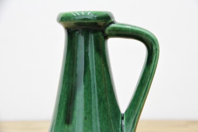 西ドイツにて製造されていたFatlavaという名がついた陶磁器、BAY Keramik社製のフラワーベースです。たまごのような形からスラリと伸びる口までのデザイン、濃い緑の色が目を惹きます。泡のような黒いボコボコとした釉薬の仕上がりもFatLavaらしい特徴が出ています。