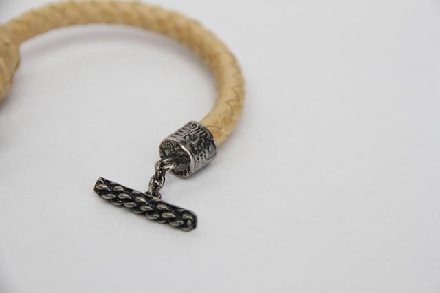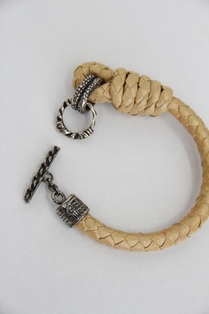唯一無二の特別感を味わえる、Gem Kingdomのブレスレット。レザーが編みこまれデザインはバングルのような存在感があります。