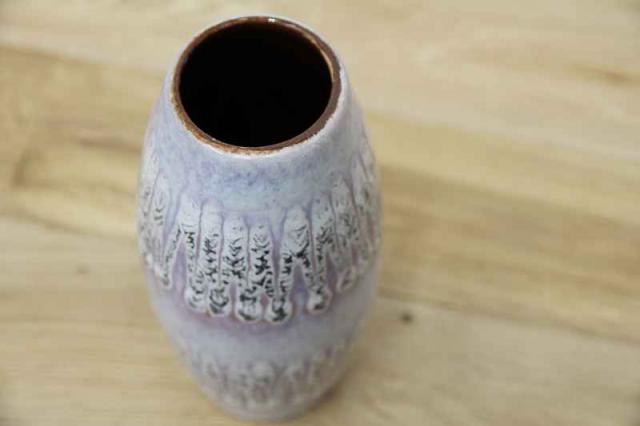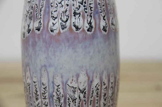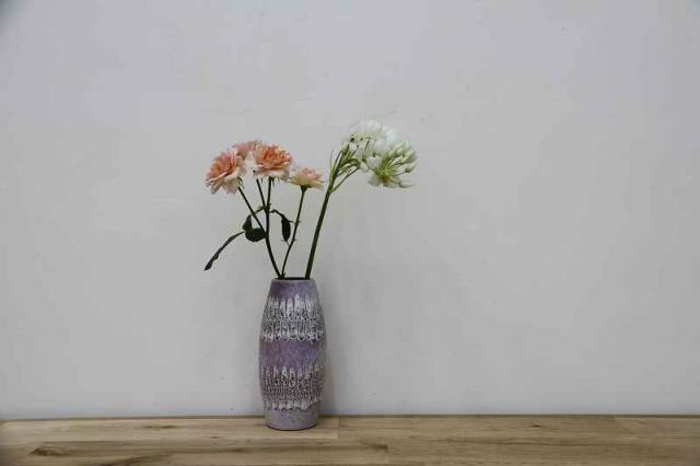 ドイツ製ヴィンテージの陶器のフラワーベースです。キレイなラベンダー色と、ギザギザと上下に描かれた模様が印象的ですね。優しい雰囲気のある素敵な花瓶です。