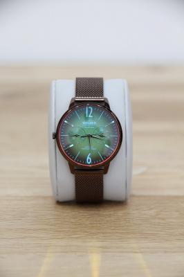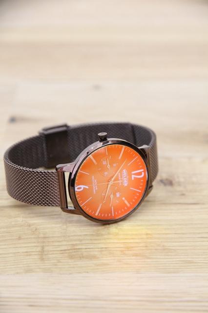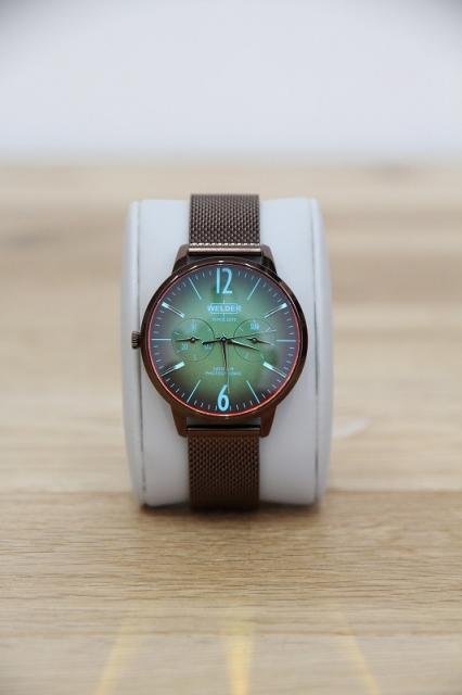 フォトジェニックなファッションウォッチ、WELDERの腕時計です。光の角度に応じて色を変える、”フォトクロミックガラス”を採用したMOODYコレクション。ブラウンのベルトにイエロー系の文字盤でクラシックな雰囲気。