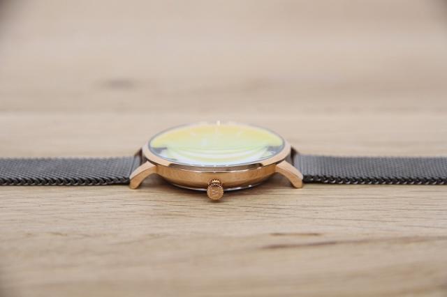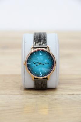 フォトジェニックなファッションウォッチ、WELDERの腕時計です。光の角度に応じて色を変える、”フォトクロミックガラス”を採用したMOODYコレクション。グレーのベルトにグリーンの文字盤、ゴールドのフレームがよりアクセントに。