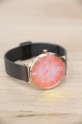 フォトジェニックなファッションウォッチ、WELDERの腕時計です。光の角度に応じて色を変える、”フォトクロミックガラス”を採用したMOODYコレクション。グレーのベルトにグリーンの文字盤、ゴールドのフレームがよりアクセントに。