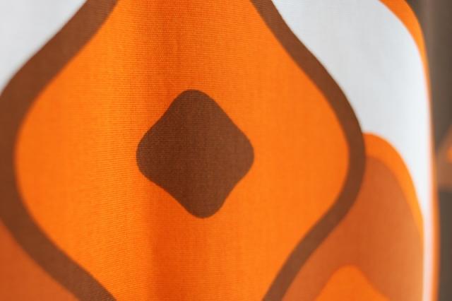 ミッドセンチュリーな雰囲気漂う、ヴィンテージのファブリックです。季節問わずお使いいただける質感の生地で、あまり透け感がなく程よく厚みがあるインテリアファブリック。壁に掛けたり、カーテンとしてアレンジをするのにもおすすめです。