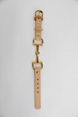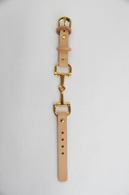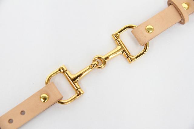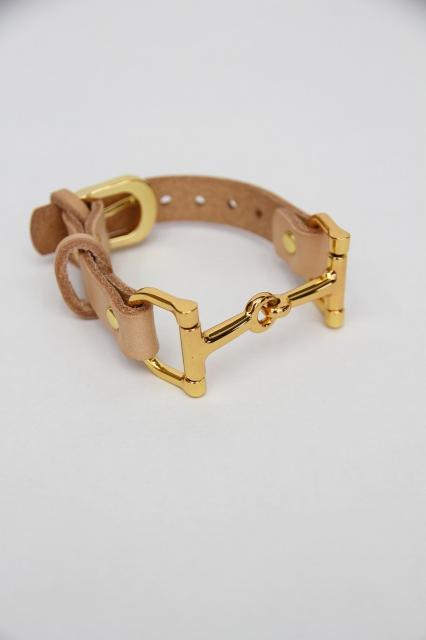 ホーススナッフルビットのパーツとレザーベルトが品のある雰囲気を漂わせるIDEANAのレザーブレスレット。腕時計とも相性のいいデザインです。