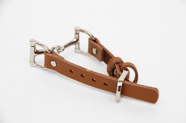 ホーススナッフルビットのパーツとレザーベルトが品のある雰囲気を漂わせるIDEANAのレザーブレスレット。腕時計とも相性のいいデザインです。