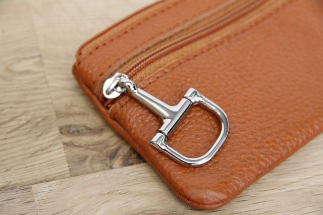 ホーススナッフルビットのパーツがアクセントに、品のある雰囲気を漂わせるIDEANAのレザーコインケース。中には鍵を付けられるリングが付いています。