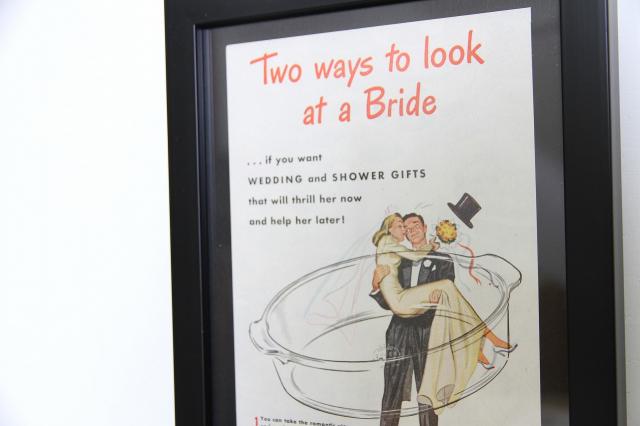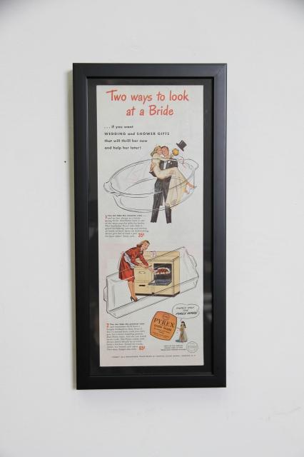 LIFE誌のヴィンテージ広告を額装したアートフレーム。PYREXが当時、結婚祝いのギフトのために出していた広告。