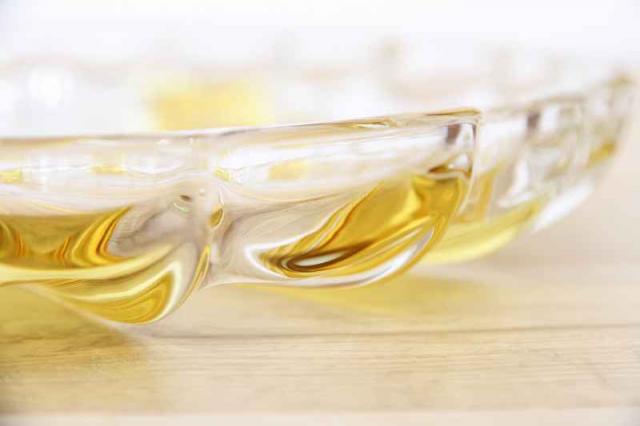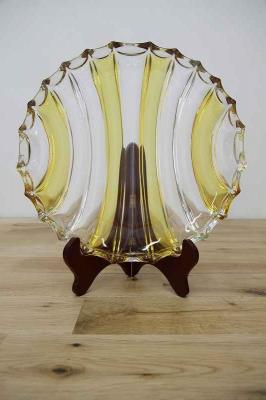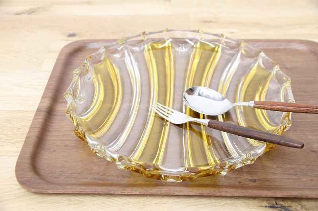 滑らかな曲線がなんといっても大変美しいヴィンテージプレートです。かなり厚みのあるガラス製で、光の反射により様々な表情を見せてくれるプレートですよ。