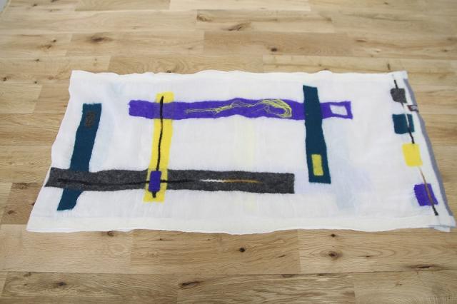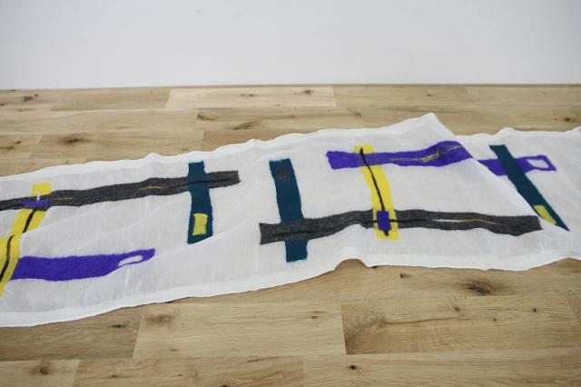 カラフルな色と、異素材を組み合わせたデザインが特徴的なSheepcountのストールです。シルクとウールの組み合わせは、通気性、保湿性、保温性を兼ね備えた素材感。長い期間お使いいただけます。