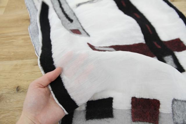 カラフルな色と、異素材を組み合わせたデザインが特徴的なSheepcountのストールです。シルクとウールの組み合わせは、通気性、保湿性、保温性を兼ね備えた素材感。長い期間お使いいただけます。