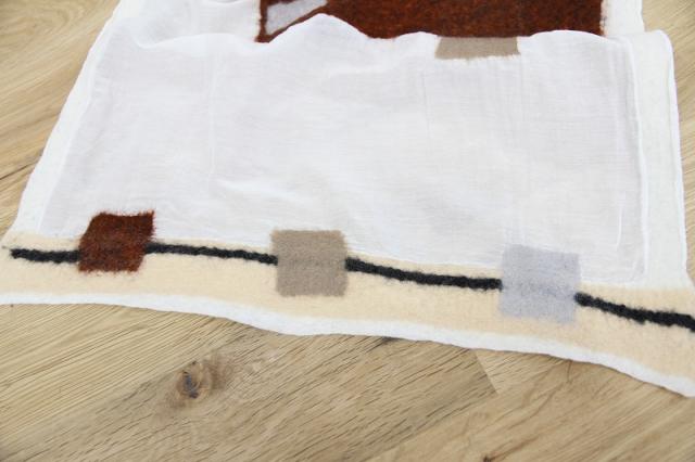 カラフルな色と、異素材を組み合わせたデザインが特徴的なSheepcountのストールです。シルクとウールの組み合わせは、通気性、保湿性、保温性を兼ね備えた素材感。長い期間お使いいただけます。
