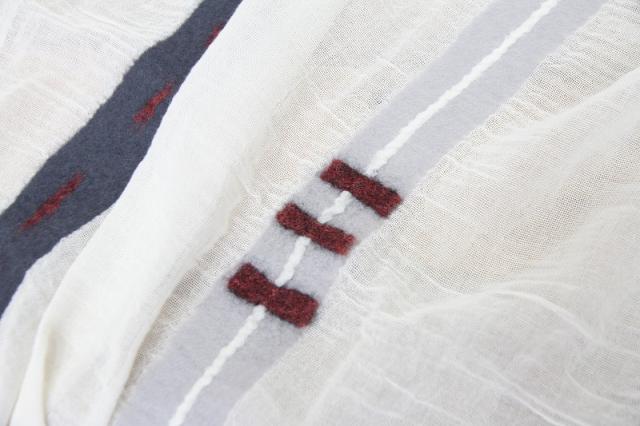 カラフルな色と、異素材を組み合わせたデザインが特徴的なSheepcountのストールです。オーガニックコットンとウールの組み合わせは、通気性、保温性を兼ね備えた素材感。ハンドメイドならではの一枚一枚の仕上がりの違いをお楽しみください。