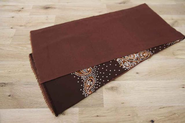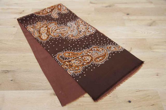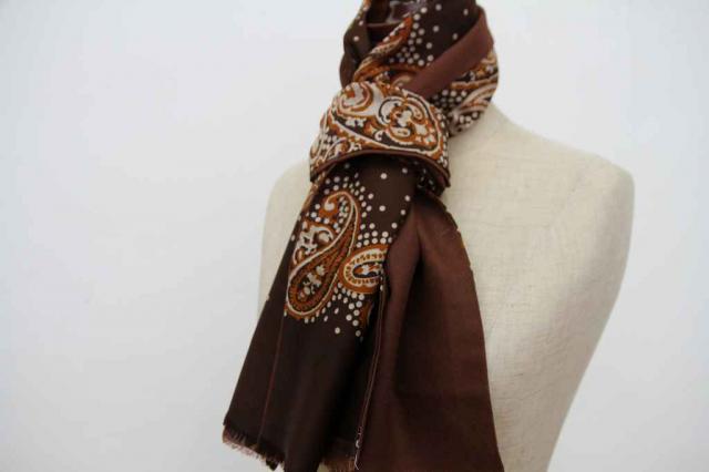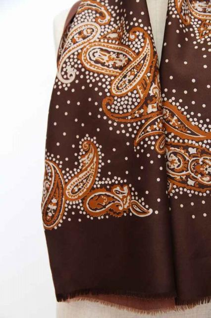 ヨーロッパから届いた長方形型のヴィンテージスカーフです。ブラウンベースの色合いで秋冬のファッションには持ってこい!なデザインです。レトロファッションを楽しみましょう。