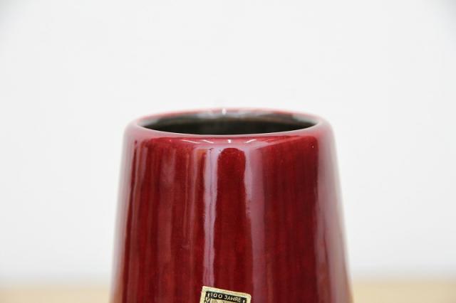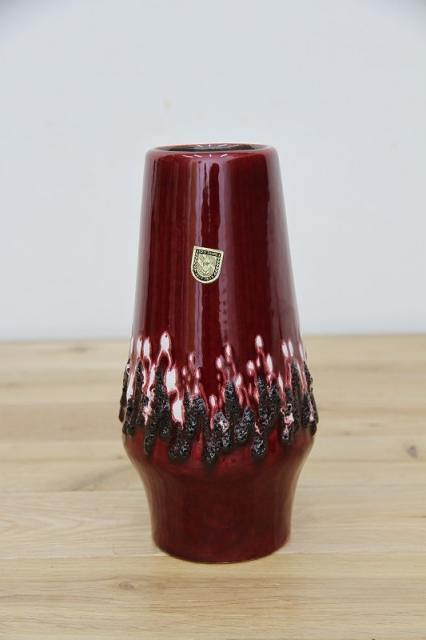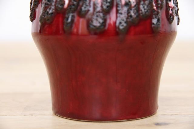 ドイツ製ヴィンテージのFatLavaテイストなフラワーベース。赤ワインのような赤の色がとっても印象的。ジグザグと黒と白の泡の釉薬が特徴あるデザインです。